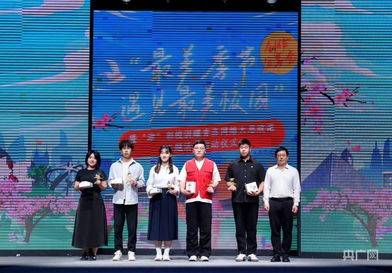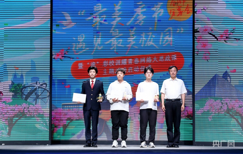 “最美季节遇见最美校园”活动一等奖获奖学生代表领奖(央广网记者 周思杨 摄)