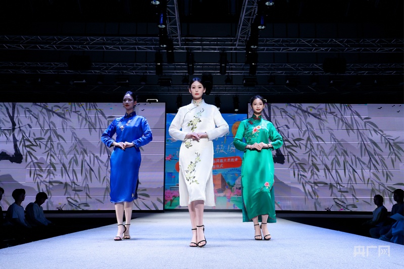 天津工业大学艺术学院表演系带来旗袍服饰秀《抽纱刺绣·华韵芬芳》(央广网记者 褚夫晴 摄)